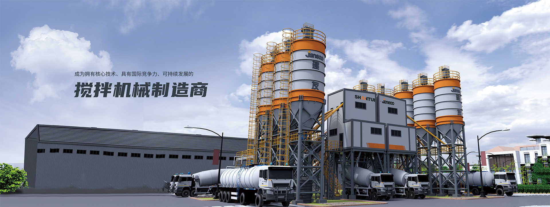 山推建友機(jī)械股份有限公司主營(yíng)混凝土攪拌站、瀝青攪拌站、穩(wěn)定土拌合站、干混砂漿站、制砂站、破碎線、混凝土攪拌運(yùn)輸車、圾處理設(shè)備及拖泵、砂石分離機(jī)等各類攪拌機(jī)械。